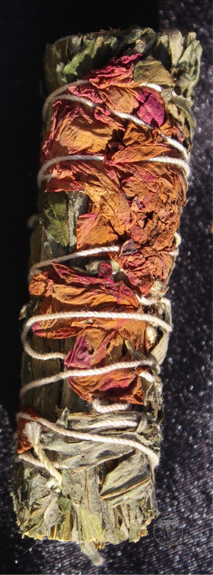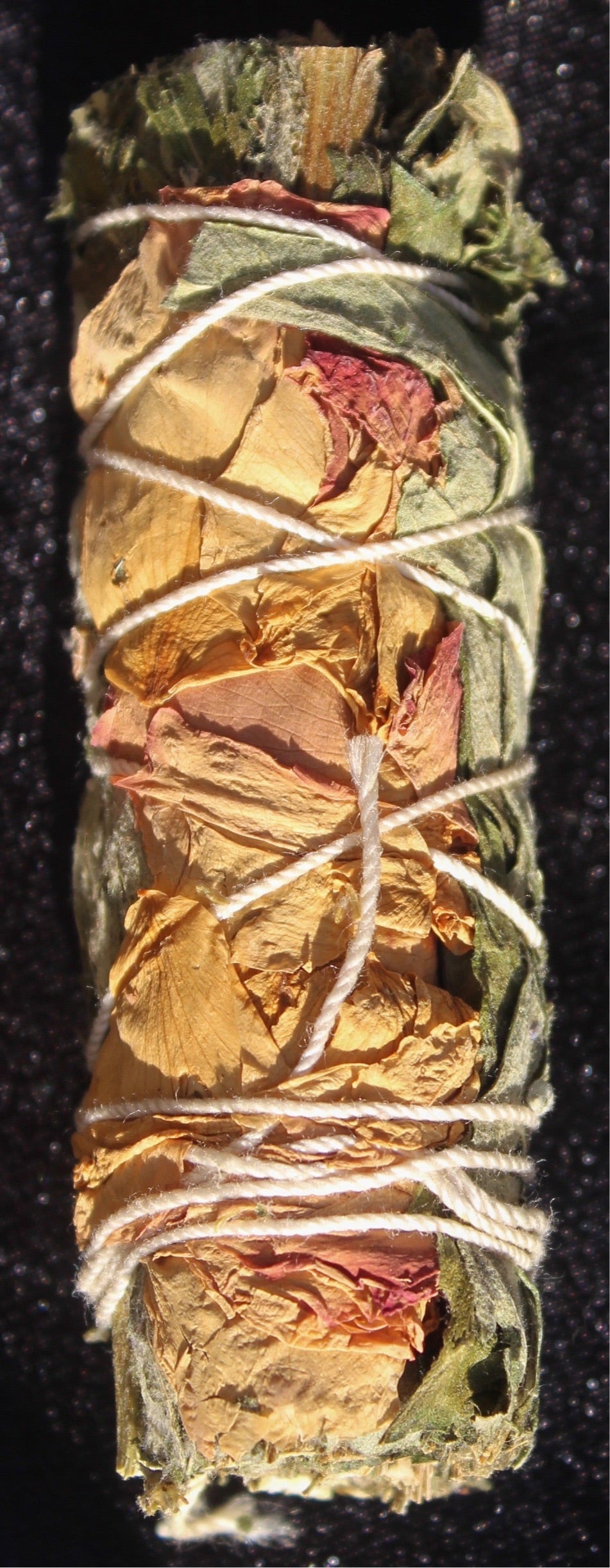 The medicine for Rose Petal lift depressive moods and create a feeling of well being and mild euphoria. The roses petals add the blessings of love, happiness, and new beginnings to the mugwort.
