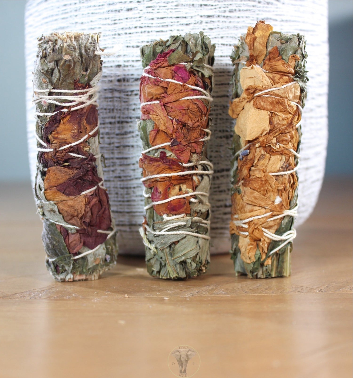The smudge sticks measure 4-5 inches in length and are all sustainably harvested.