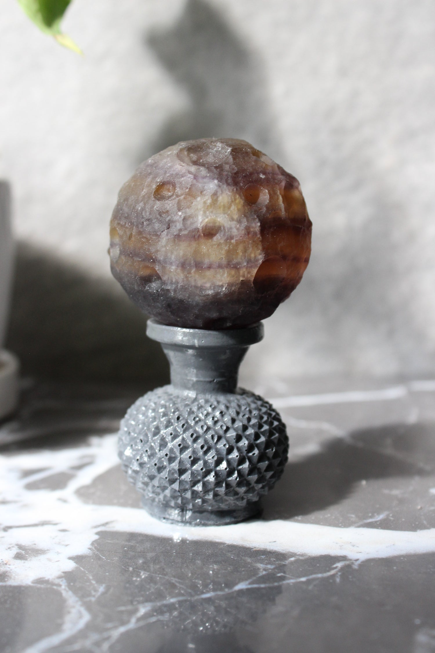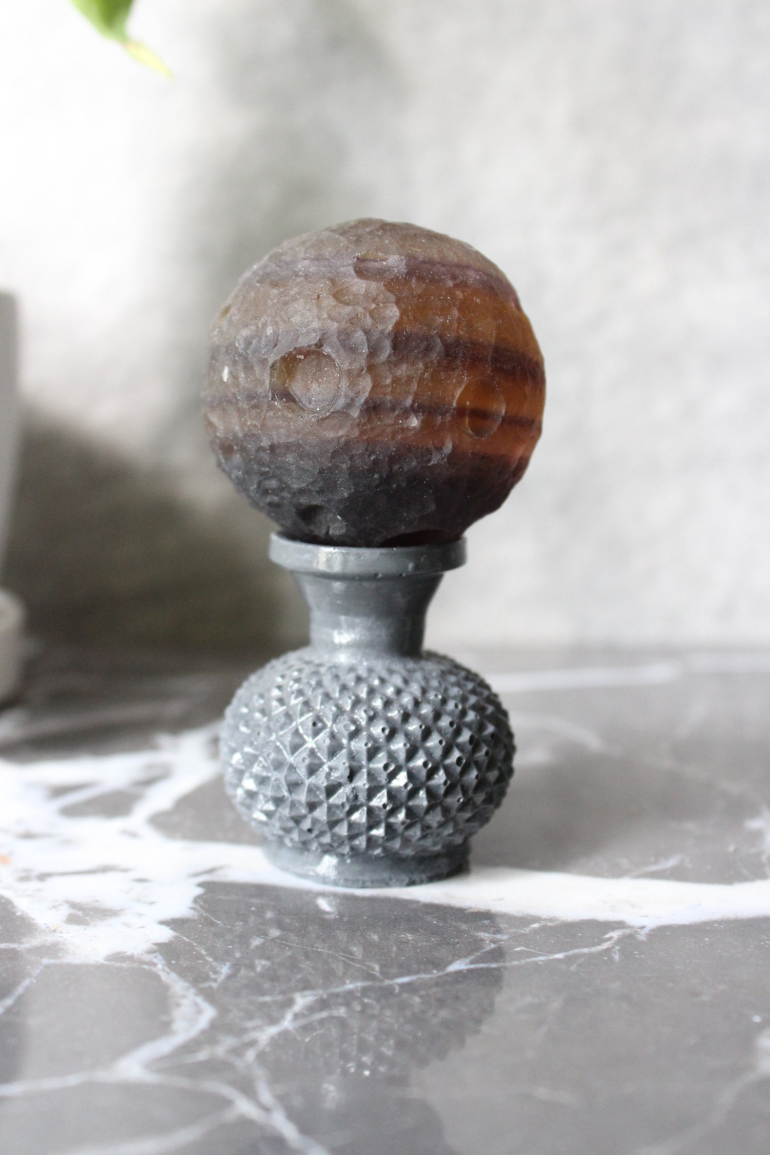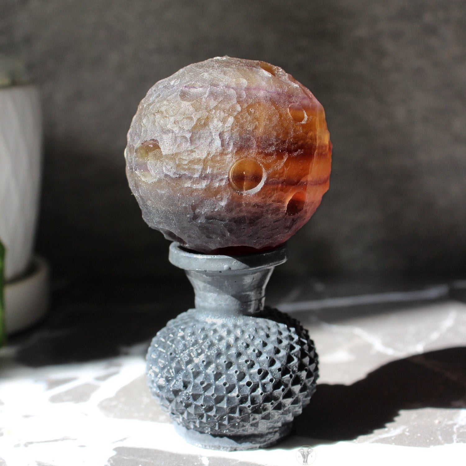 Yellow Purple Fluorite Cratered Moon | Fluorite Moon Sphere | Tons of Soul