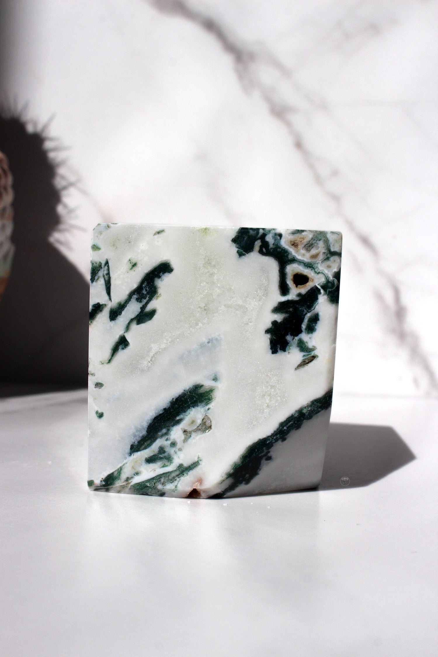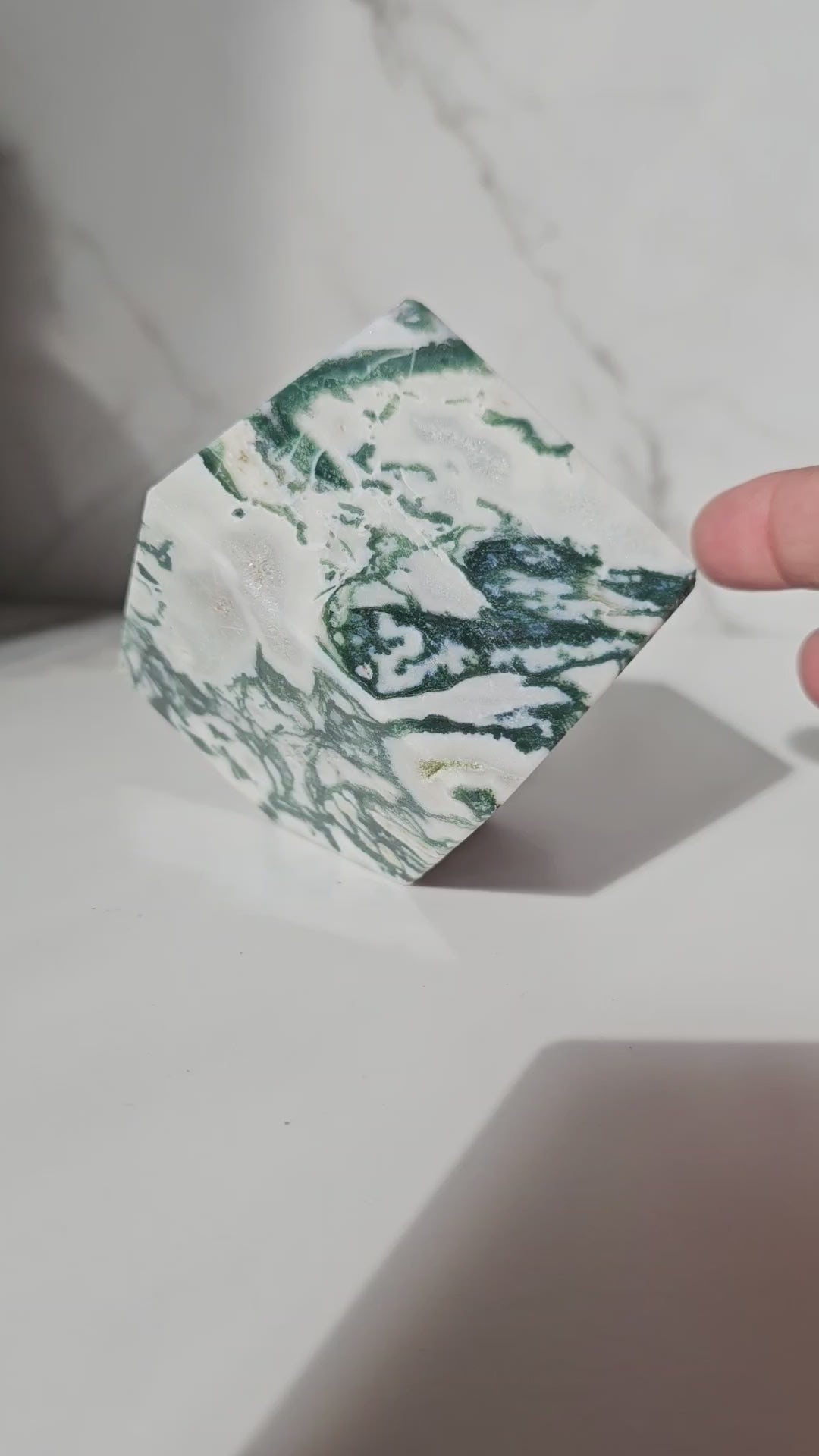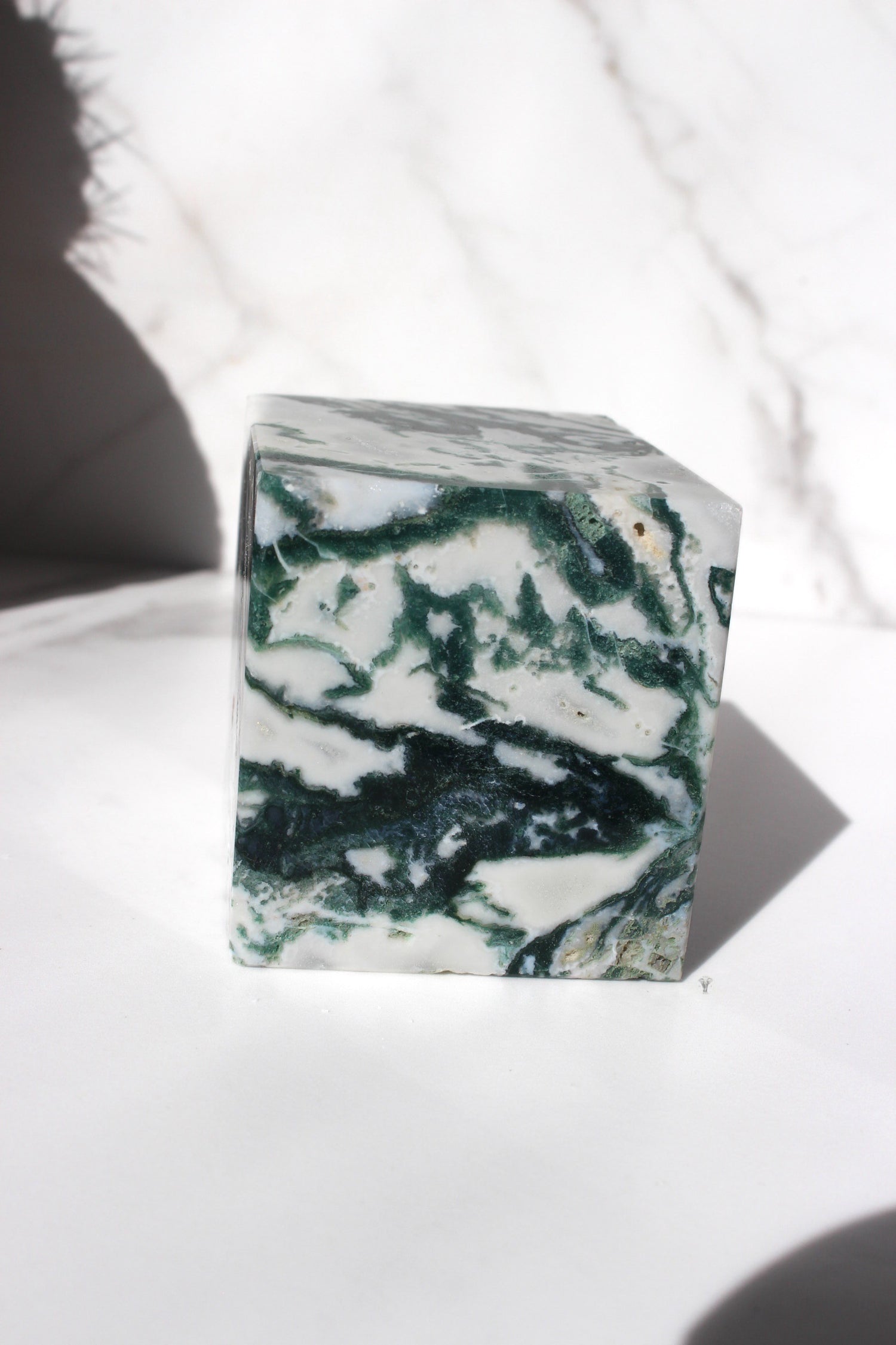 Moss Agate Floating Cube | Tilting Crystal Cube | Moss Agate Corner Cut Crystal Cube | #2 Tons of Soul