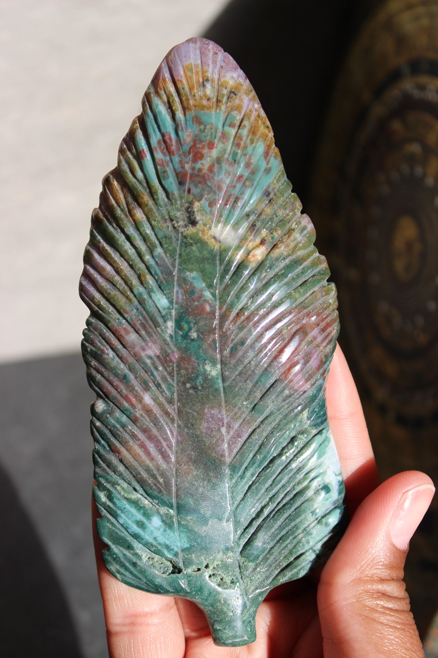Ocean Jasper Feather | Crystal Feather Carving | Tons of Soul