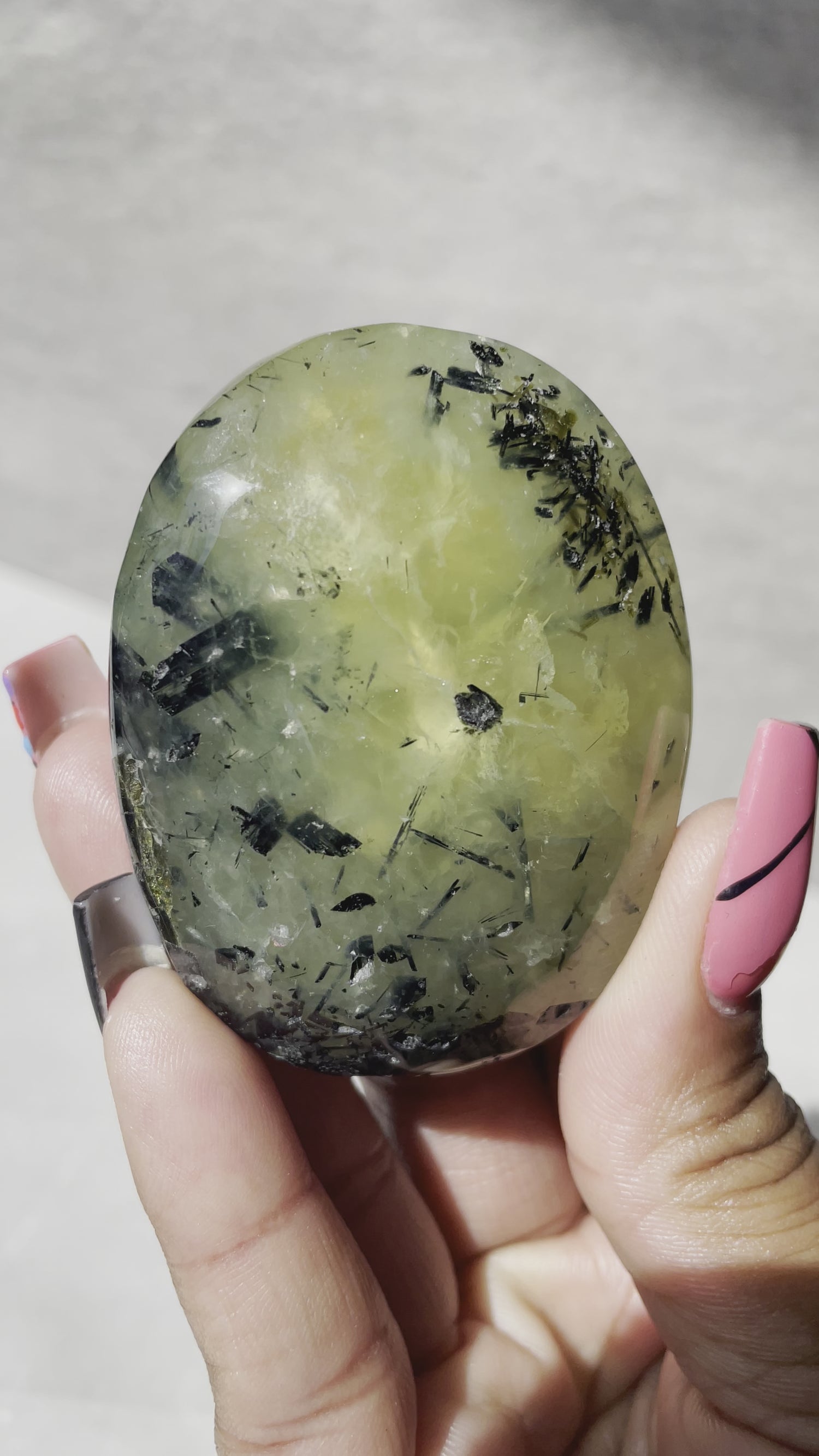 Prehnite and Epidote Palmstone | Crystal Palmstone | Tons of Soul